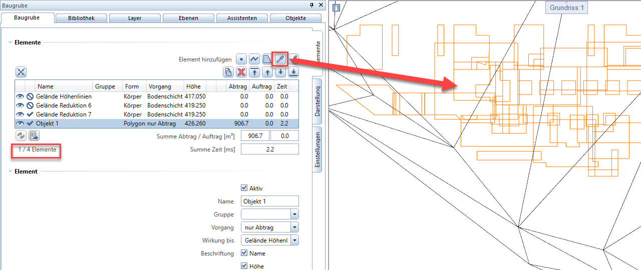 Korrekte Darstellung der Baugrube ohne «unsichtbare Makrofolien»